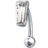 - (1) 4mm x 2mm x 1mm Fixed White CZ Tapered Baguette in Bar Setting & a 1/8" threaded bead bottom