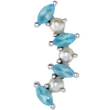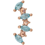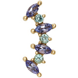 • Tiny: 11.5mm x _mm threaded end with alternating (4) 3mm x 1.5mm Marquise-Cut Tanzanite & (3) 1.5mm Round Mercury Mist Topaz in Prong's