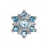 - 6mm threadless end with (1) 2mm Round Turquoise in Bezel in center & (6) 1.25mm Round Genuine White Diamonds in Prong's