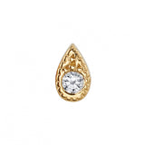 A classic teardrop shape with intricate milgrain detailing and a textured pave finish, all elevated by a dazzling Diamond.
