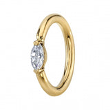 This simple yet stylish seam ring features a single gorgeous Diamond marquise in V-Prongs.