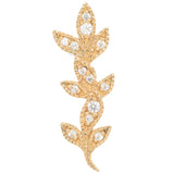 The "Medium Wisteria" showcases a vine with stacked leaves adorned by millgrain edges. Each leaf features a beautiful gemstone.