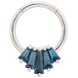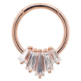 The stones on this Tapered Baguette hinge ring look like calm waves that rise and fall.
