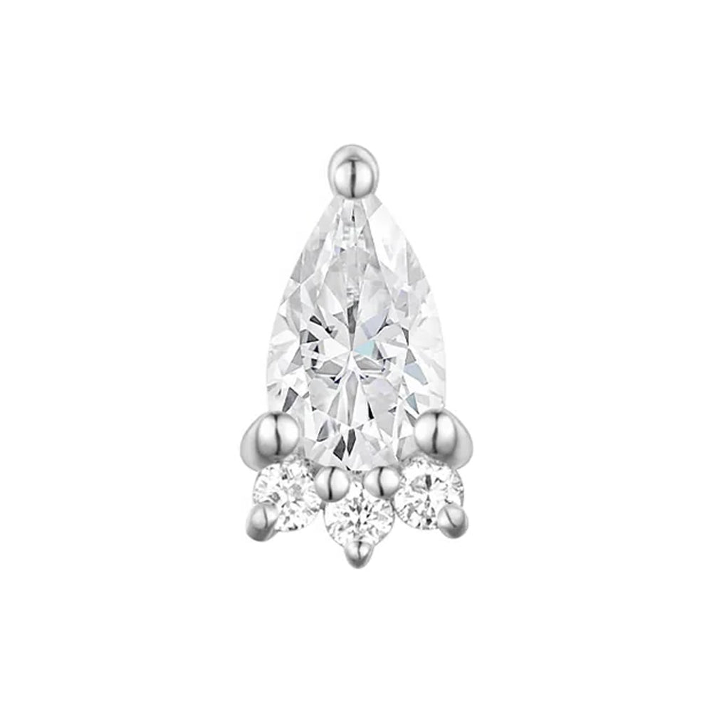 Diamonds on Diamonds! This "Leia" dazzles with a pear-shaped diamond highlighted by three sparkling round diamonds beneath it.