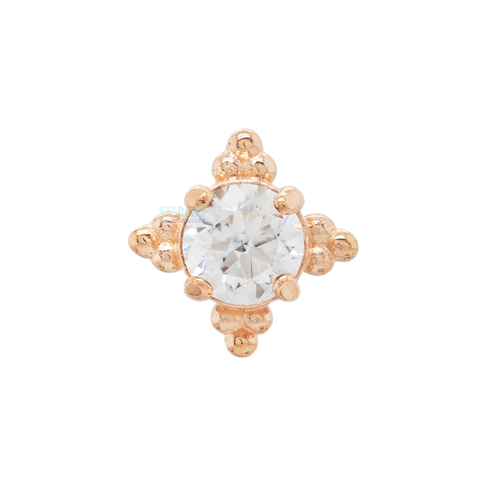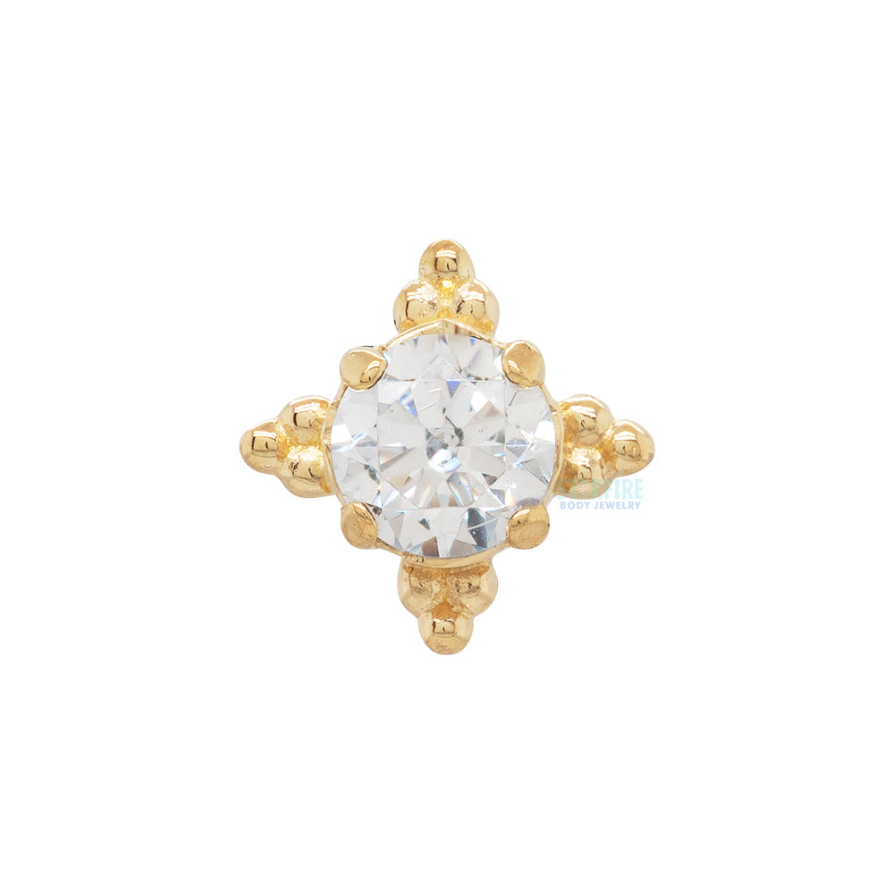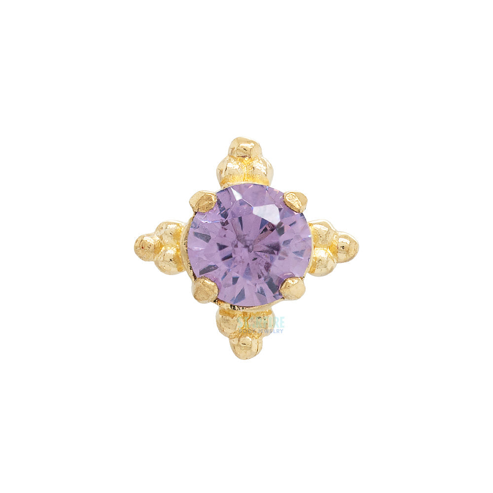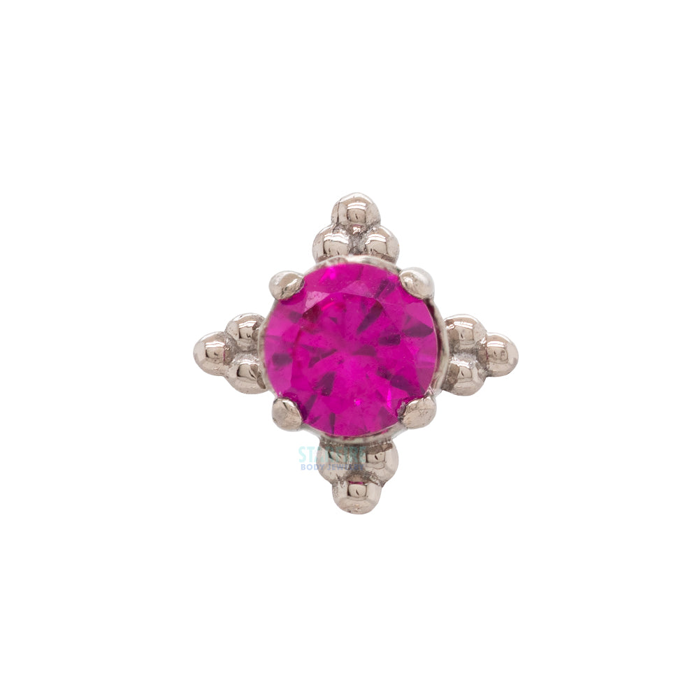 The "Zia" features a single gemstone inside a prong setting and accented by tri-bead clusters.