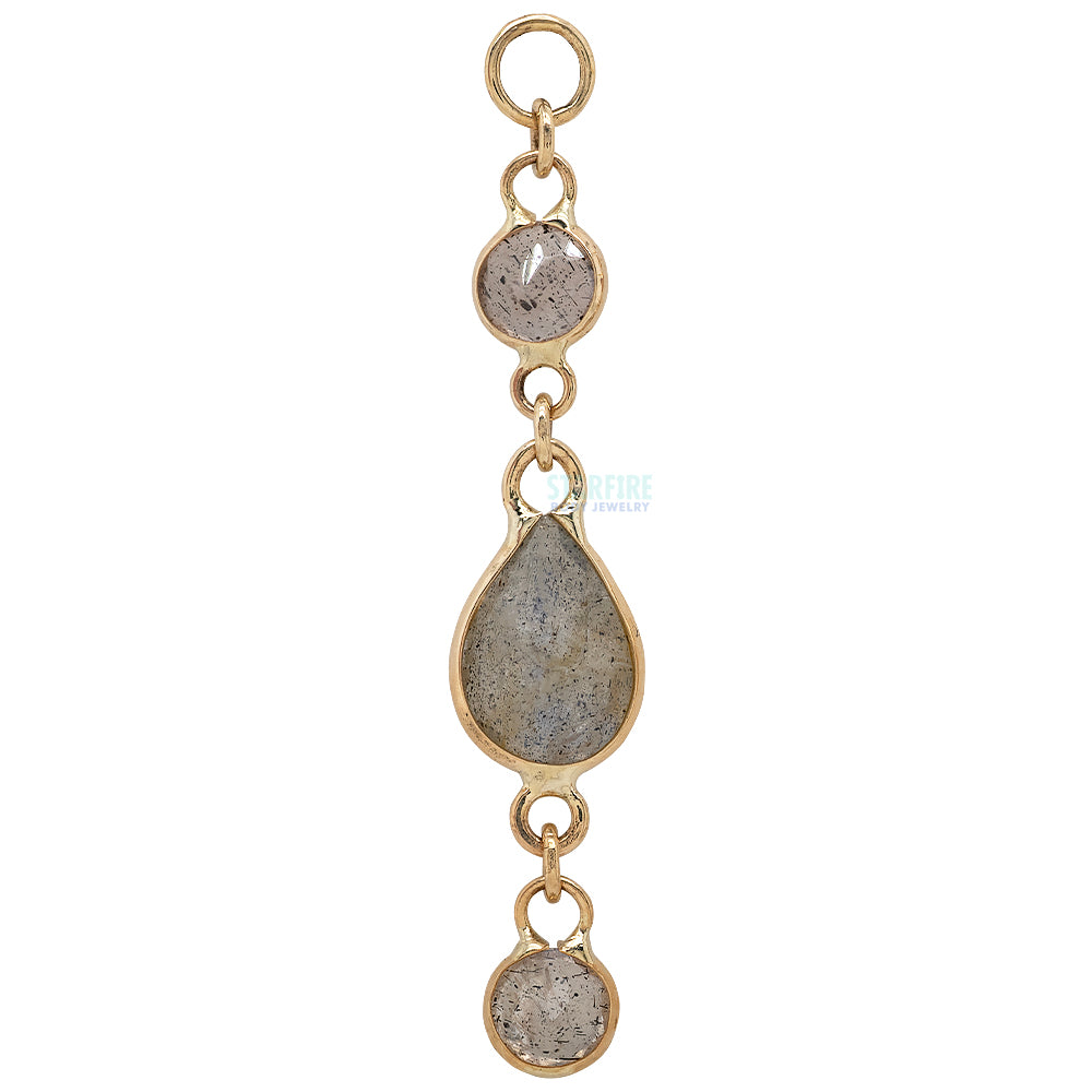 Who's Drip? Your drip! This delightfully drippy charm is adorned with a pear cut gem sandwiched between two round gemstones!