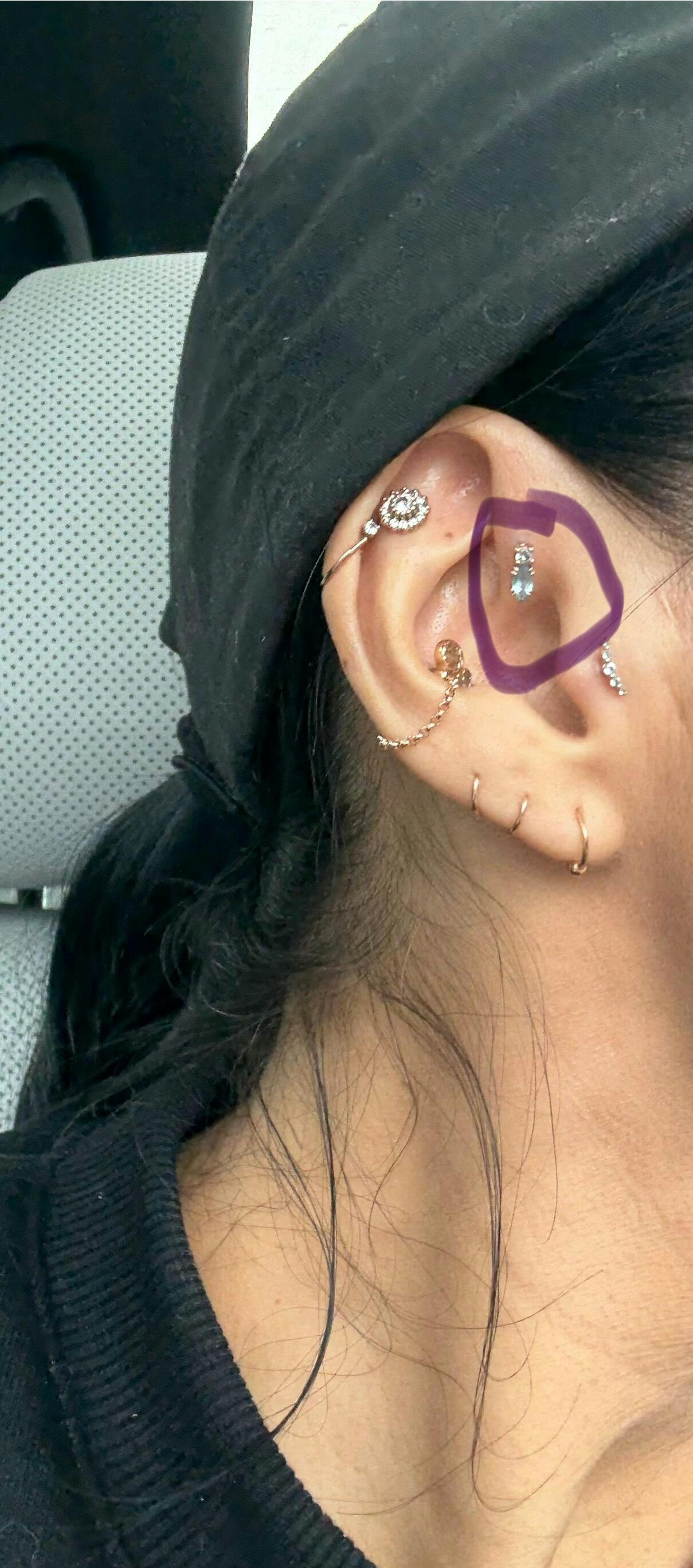 Commonly worn in: earlobes, sensitive lobes, cartilage, helix, conch, rook, tragus, snug