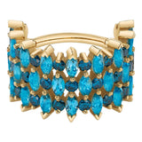 An extra row for extra bling, three rows of marquise Swiss Blue Topaz' and round Ocean Blue Diamonds create a dazzling display of light and beauty.