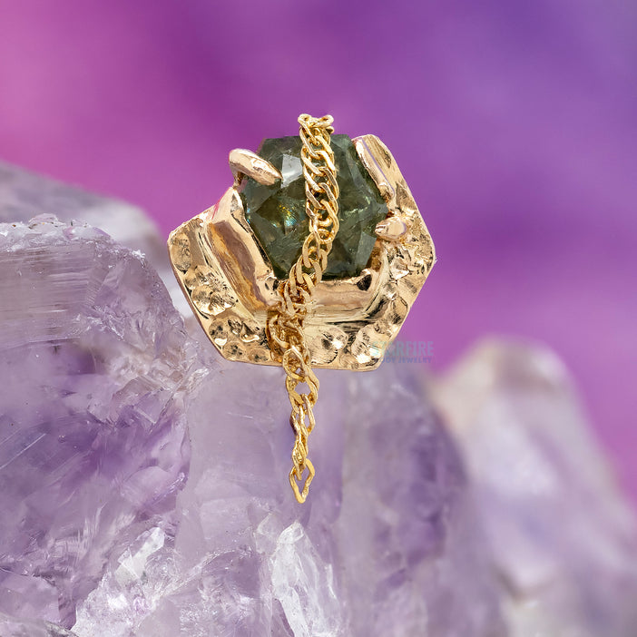 "Bigger than Kiss" Threaded End in Gold with Green Sapphire