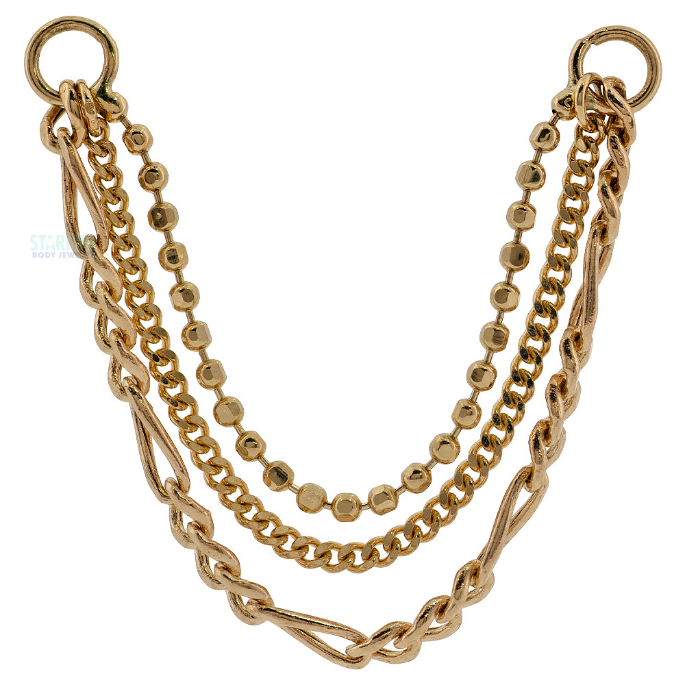 This chain attachment is made up of three different styles of chains, meshing class and glamour!