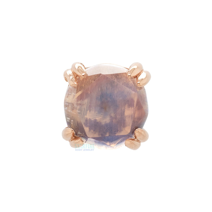 Rose Cut Rainbow Moonstone Prong Set Threaded End in Gold & Platinum