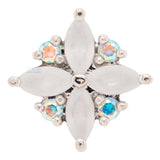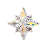 - Mini: 6mm threaded end with (4) 3mm x 1.5mm Marquise-Cut Sandblasted London Blue Topaz' in Prong's & (4) 1mm Round Champagne Sapphire AA accents