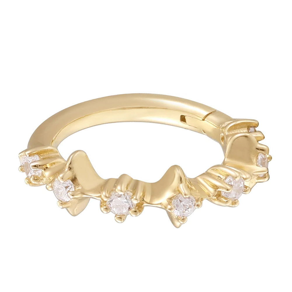 Deck out with the In My Dreams Hinge Ring. This piece features gemstones in a prong setting that will add style and bling all around.
