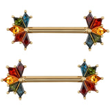"Spirit" Forward Facing Nipple Barbells in Gold Rainbow with Genuine Gemstones