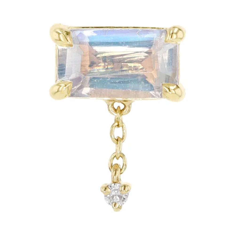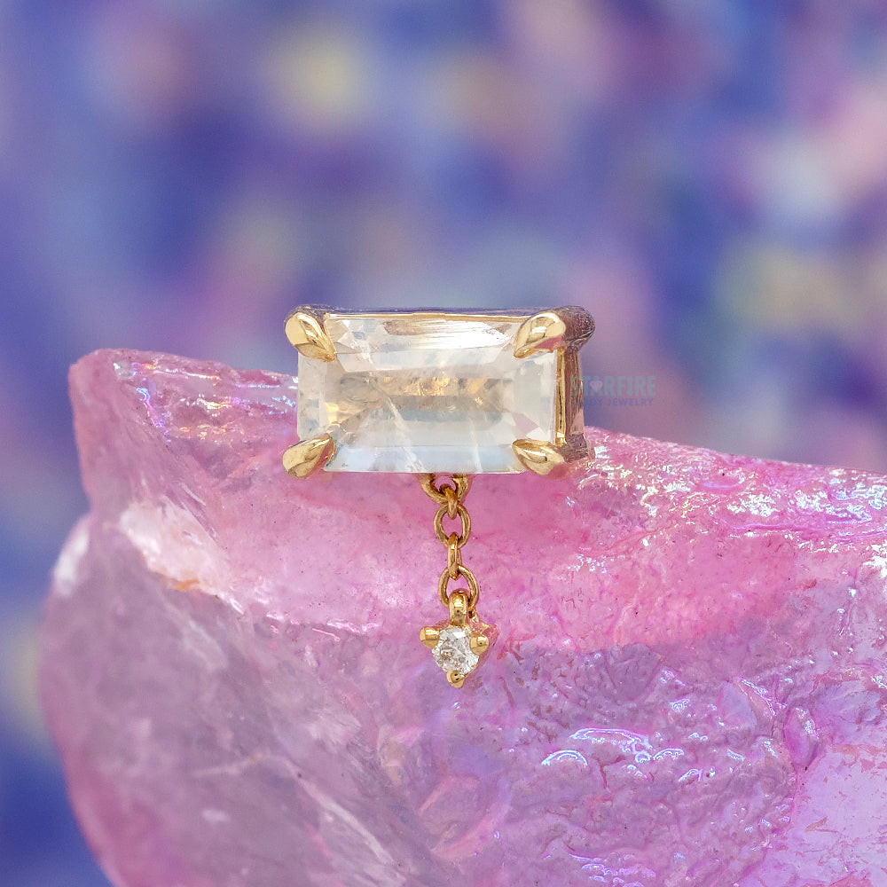 Add a touch of magic to your look with this emerald cut moonstone playfully accented by a dangling diamond.