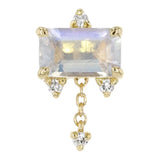 Add a touch of magic to your look with this emerald cut moonstone accented by three diamonds and an additional dangling diamond below!