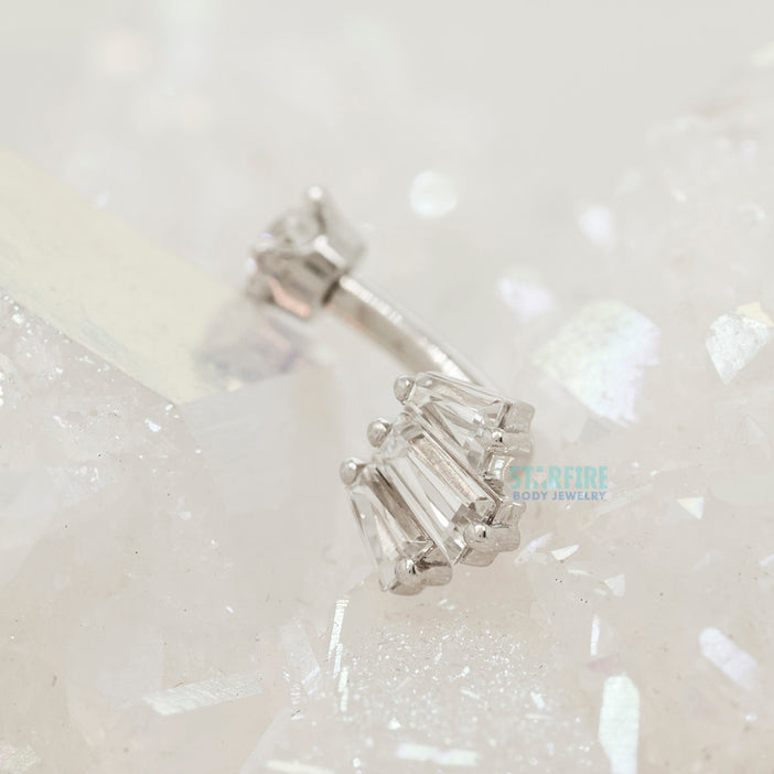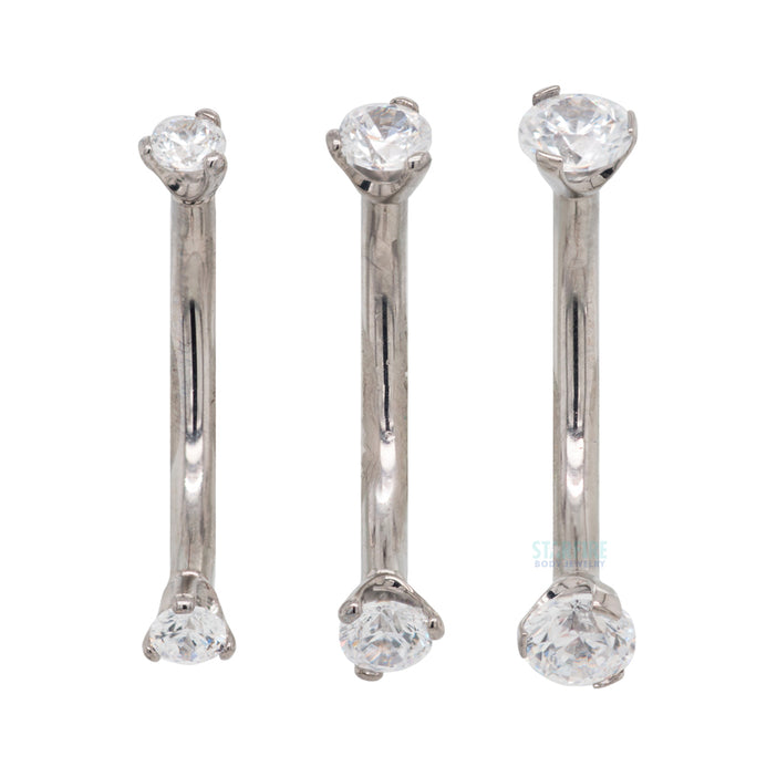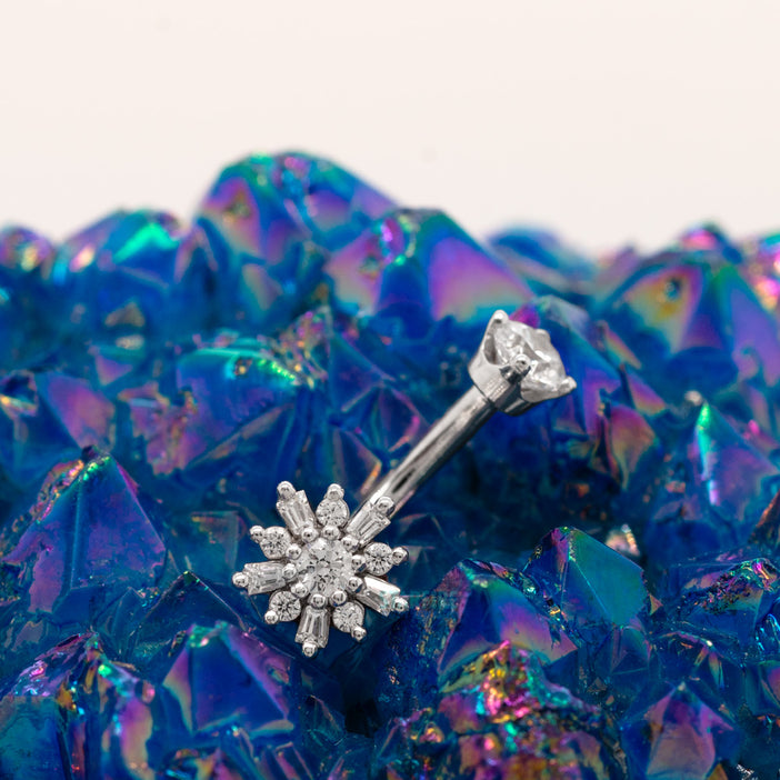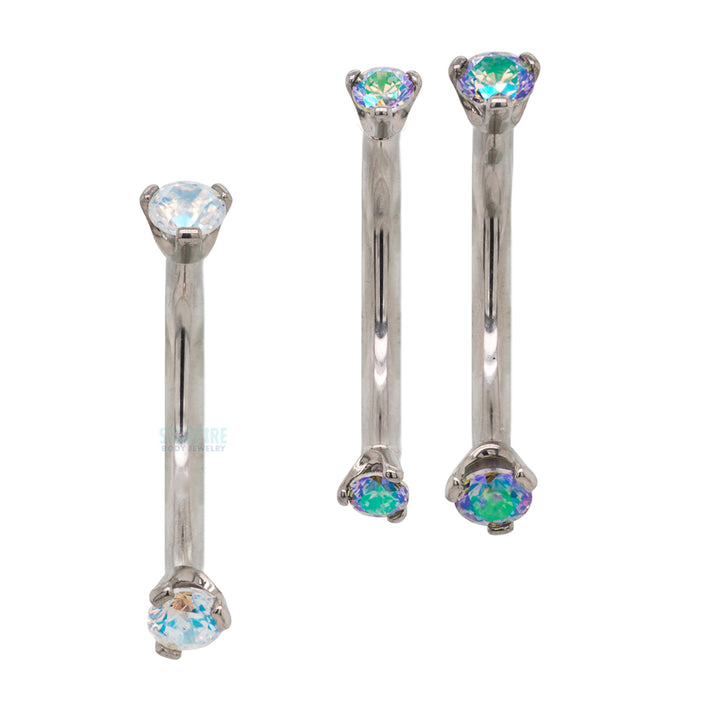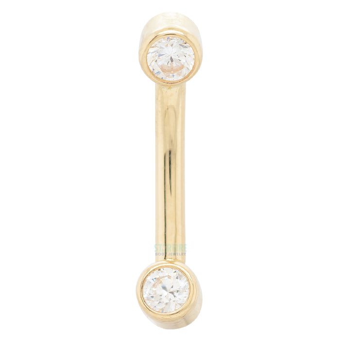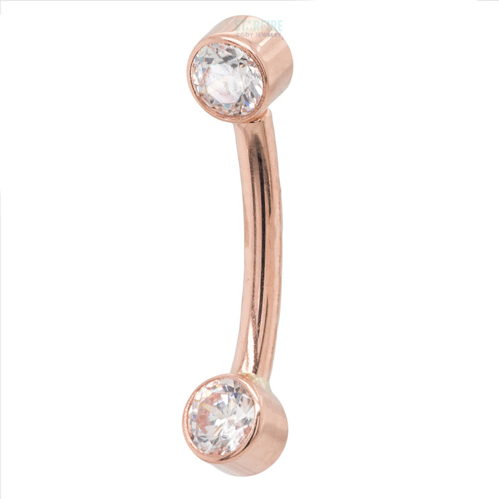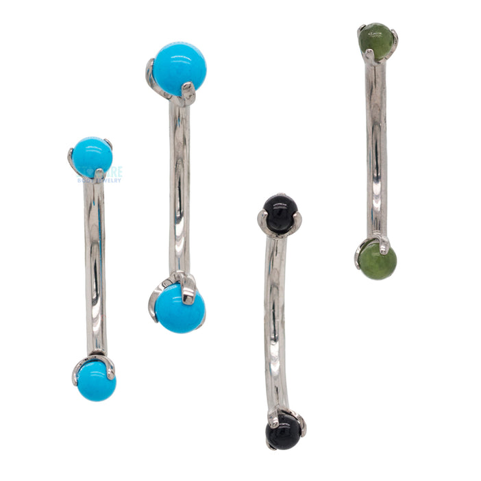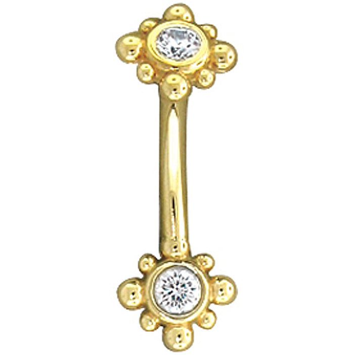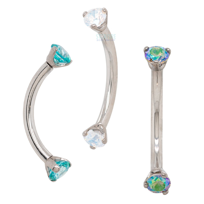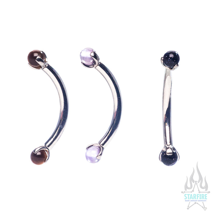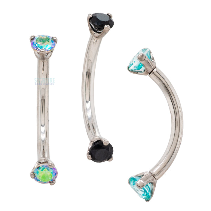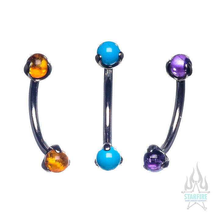 Generally offered in smaller gauge and length options, a curved barbell can come in a variety of gem and stone options, and in prong and bezel settings to adorn your eyebrow piercing. Ready to get a shorter shaft for your rook piercing? We have a variety of curved barbells perfect to do just that.