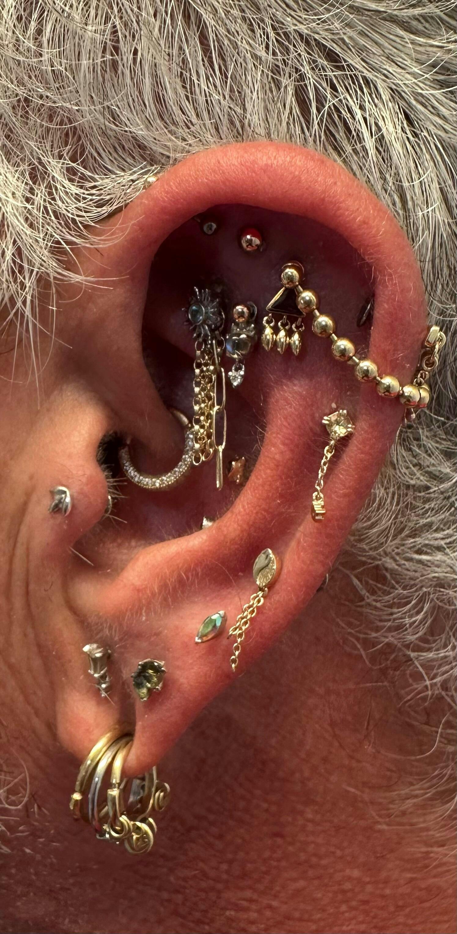 A really nice clump of junky chains. We attached these to a white gold faux rook and it really fills the entire space of my ear nicely. It’s not heavy and easy to wear.