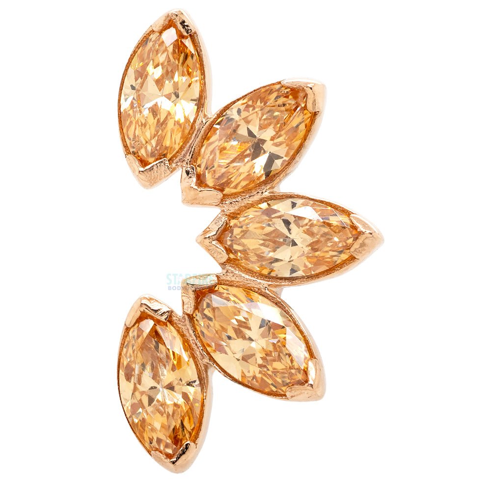 - Standard: 12mm x 5mm threadless end with (5) 4mm x 2mm Marquise-Cut Brilliant-Cut Faceted Gemstones in low profile Prong's