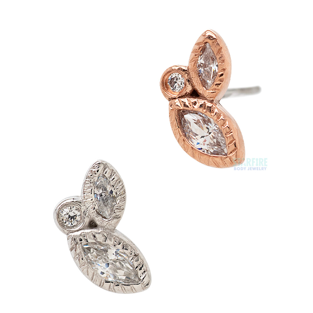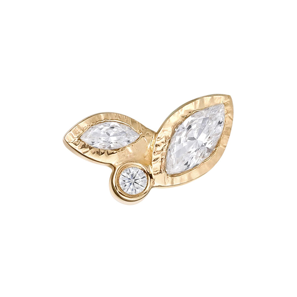 "Impulse" makes the perfect piece to wear alone or as as accent. This dainty piece features a combination of round and marquise gemstones that make it look like a leafy little bud.