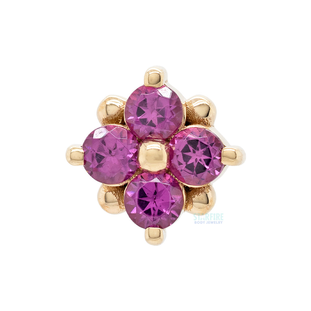 This "Reema" features a cluster of pink gemstones accented by bead detailing that make it look like a flower blossoming.
