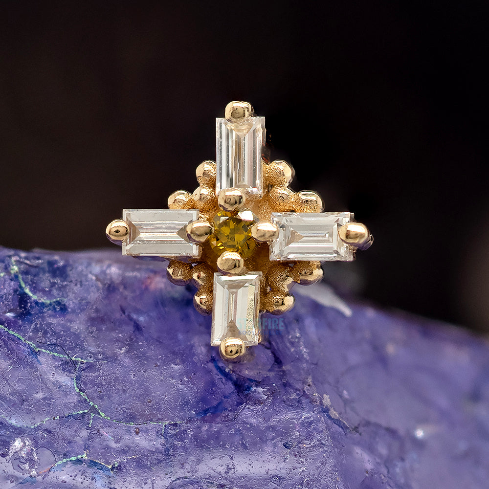 A unique gemstone cut, showcased in a perfectly organized cluster.