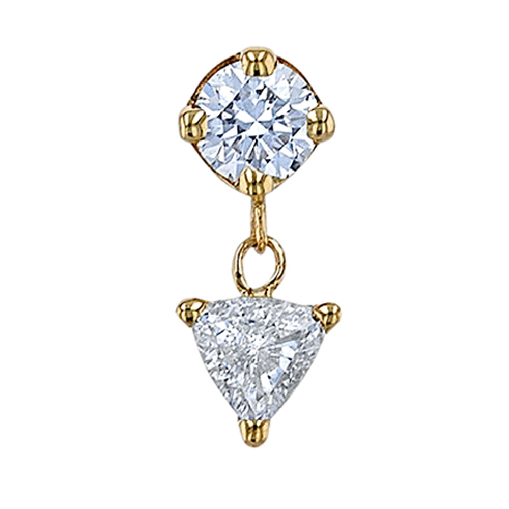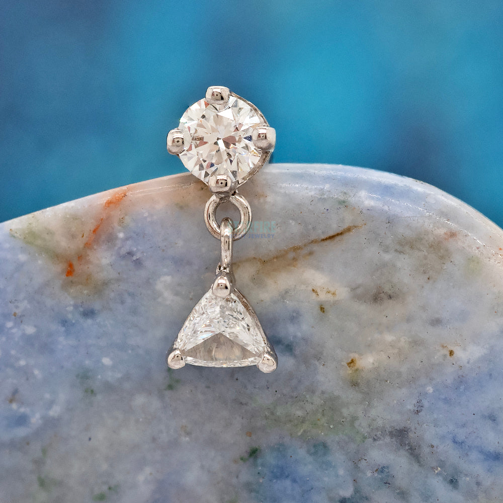The stunning Syndicate design features a dazzling trillion cut diamond suspended below a round diamond, creating a wonderfully elegant look.