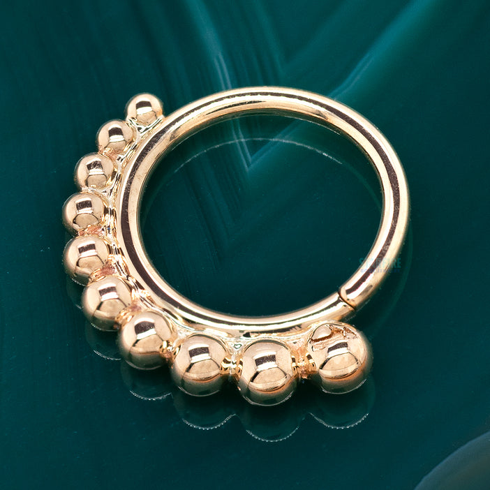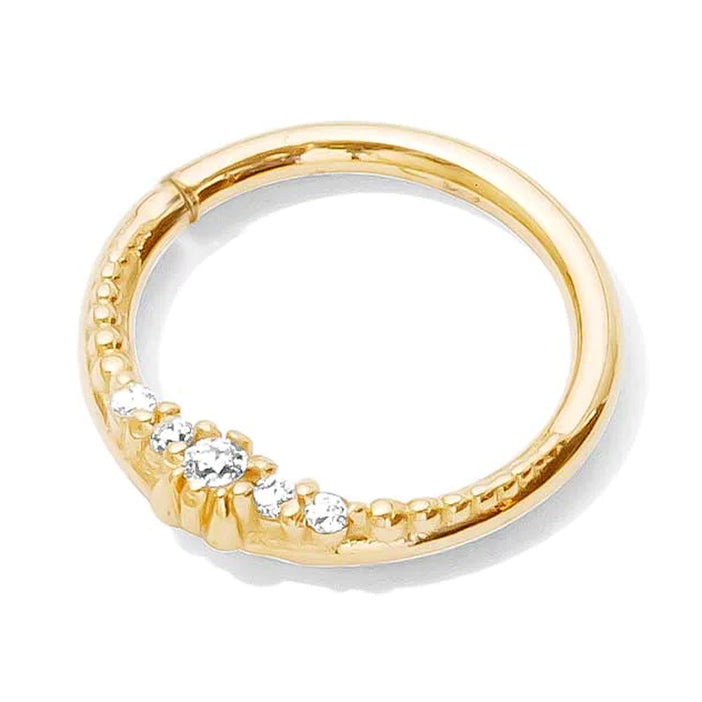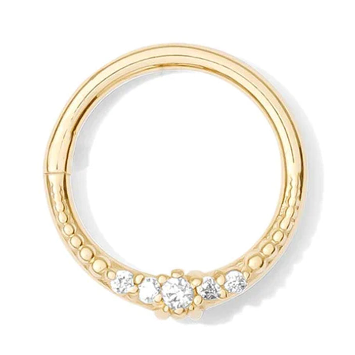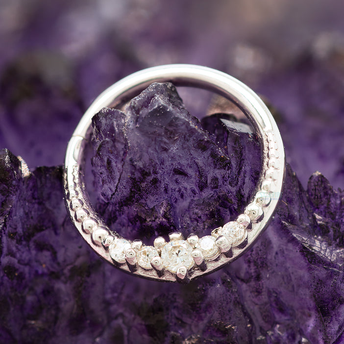 While we hear “ring” as a description for almost every piercing (who else giggles when they hear “tongue ring”?), they really encompass true round, ring styles. Captive bead rings are a ring with a captive bead preventing it from falling out and rotating through a piercing. Nostril nail rings are a great option for people who like to be able to alternate from a nose ring to a nose stud style. D-rings are most commonly worn in nipple piercings. Seam or seamless rings are terms often used interchangeably for ring styles that have no actual closure. Segment rings are essentially the high-end cousin of the captive bead ring. Instead of a bead in the gap of the ring, a segmented piece fills the space. From implant grade stainless and titanium to every color of gold, there are truly many options of piercing rings.