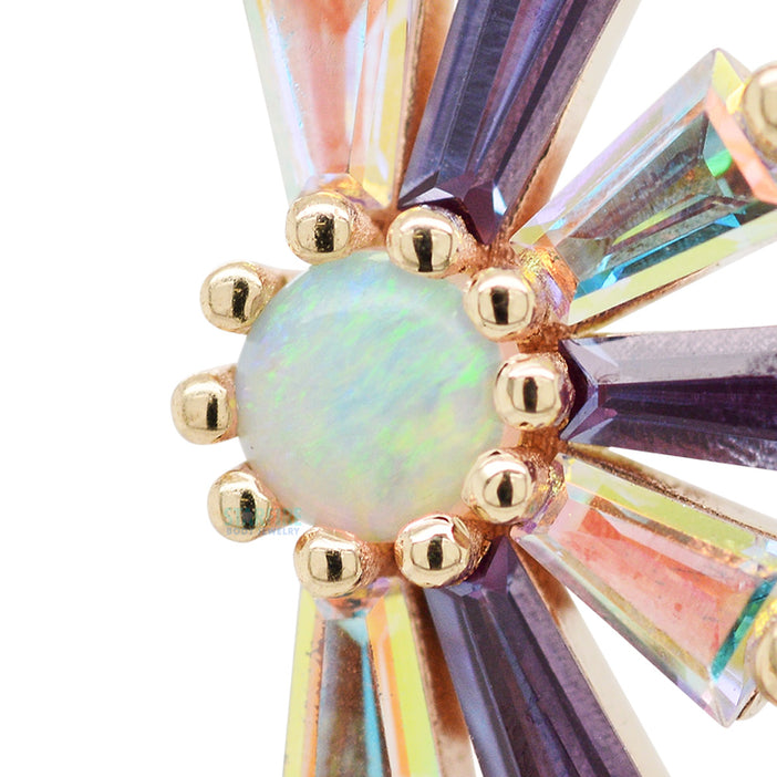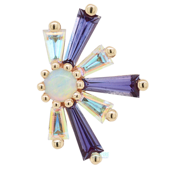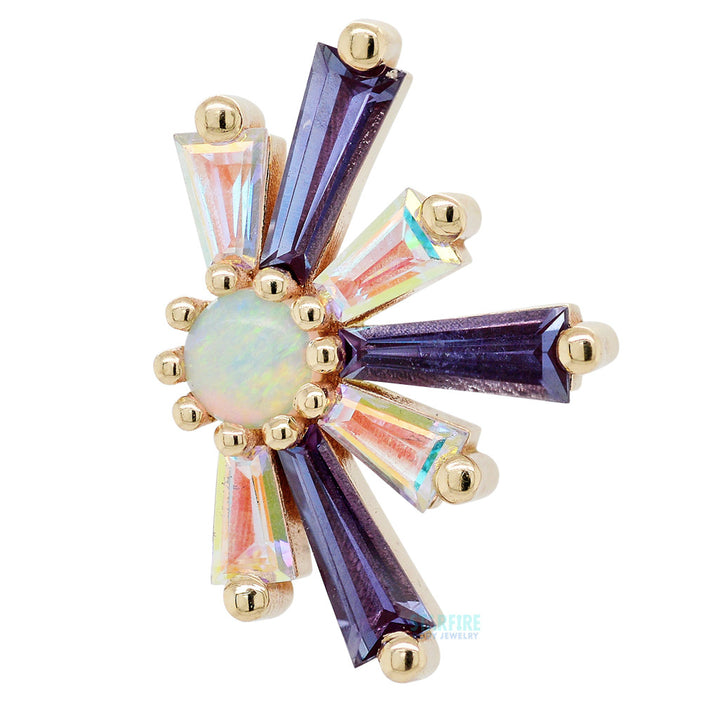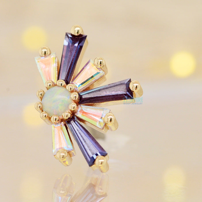 "Half Supernova" Threaded End in Gold with Rainbow Moonstone & Tanzanite