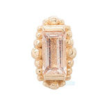 - _mm x _mm threaded end with 5mm x 2mm Faceted Rainbow Moonstone Baguette in Prongs with bead accents