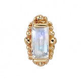 - 6.2mm x 3.8mm threaded end with 4mm x 2mm Faceted Rainbow Moonstone Baguette in Prongs with bead accents