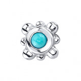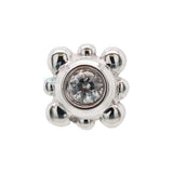 - 7mm threaded end with (1) 3mm Round White CZ in Bezel surrounded by (8) bead accents
