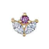 - 4mm threaded end with (2) 3mm x 1.5mm Marquise-Cut Genuine White Diamonds in Prong's & (1) 1.5mm Round Rhodolite AA in Prong's