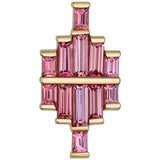 - 10mm x 5mm threaded end with (2) 3mm x 1mm Baguette-Cut Chatham Alexandrite, (4) 2.5mm x 1mm Baguette-Cut Chatham Alexandrite & (6) 1.5mm x 1mm Baguette-Cut Chatham Alexandrite in half bezels
