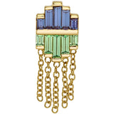 Baguettes stacked on baguettes, this cluster features graduating baguette-cut Chatham Alexandrite and Tsavorite with chains dangling beneath!