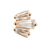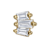 - 6mm x 5mm threaded end with (1) 4mm x 2mm x 1.5mm Tapered Baguette-Cut White CZ's in Prong's surrounded by (2) 3mm x 2mm x 1mm Tapered Baguette-Cut White CZ's in Prong's
