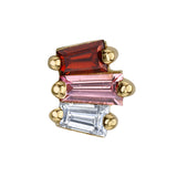 - Mini: 4mm x 3.5mm threaded end with (1) 2.5mm x 1.3mm x 1mm Tapered Baguette-Cut White CZ's in Prong's surrounded by (2) 2mm x 1.5mm x 1mm Tapered Baguette-Cut White CZ's in Prong's