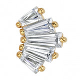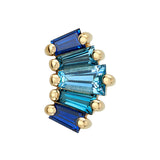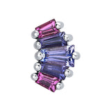 - 6mm x 8.5mm separate threaded end with (1) 5mm x 2mm x 1.5mm Tapered Baguette-Cut Mercury Mist Topaz surrounded by (2) 4mm x 2mm x 1.5mm Tapered Baguette-Cut Mystic Topaz & (2) 3mm x 2mm x 1mm Tapered Baguette-Cut Amethyst in Prong's