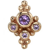 - 9mm x 6mm threaded end with (1) 2mm Round Amethyst AA in Bezel & (3) 1mm Round Amethyst AA in Bezel