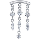 - 16 ga. 5/16" curved bar threaded end with (3) 2mm Round White CZ's, (3) 3mm x 1.5mm Marquise Cut White CZ's & (1) 1.5mm Round White CZ in Prong's on dangles