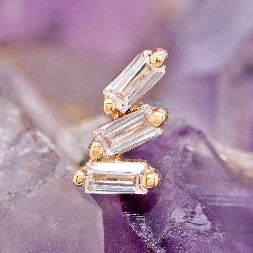 • 5mm x 2.5mm threadless end with (3) 1.5mm x 0.5mm Baguette-Cut CZ's in Prong's