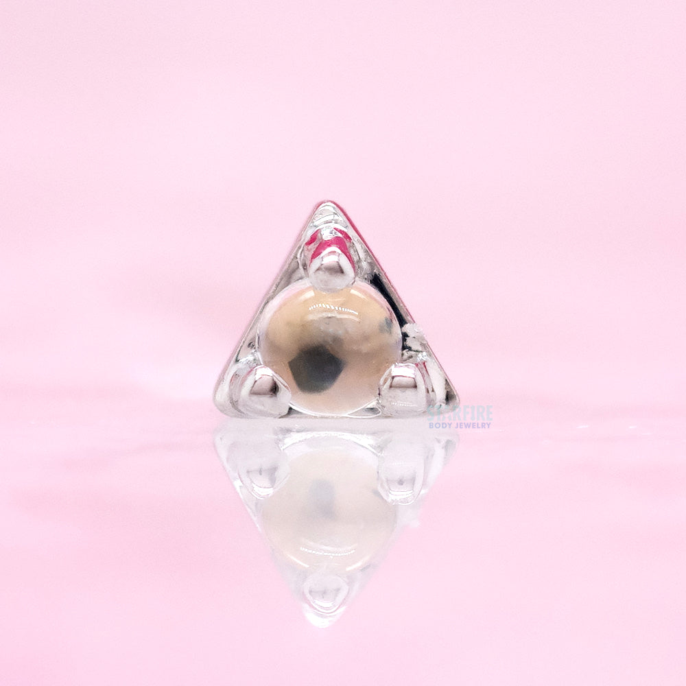 This charming triangle shaped piece is adorned with a single cabochon or faceted gem that will have you shining bright.