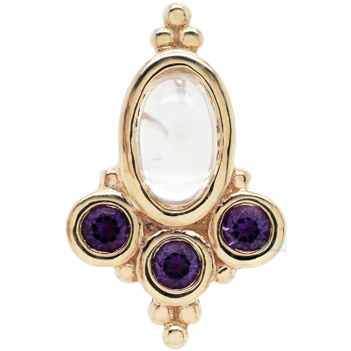 "Sarai Oval" Threaded End in Gold with Rainbow Moonstone & Amethyst