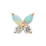 This piece boasts stunning green and blue gemstones artfully arranged in charming marquise and round cuts that evoke the graceful wings of a butterfly.