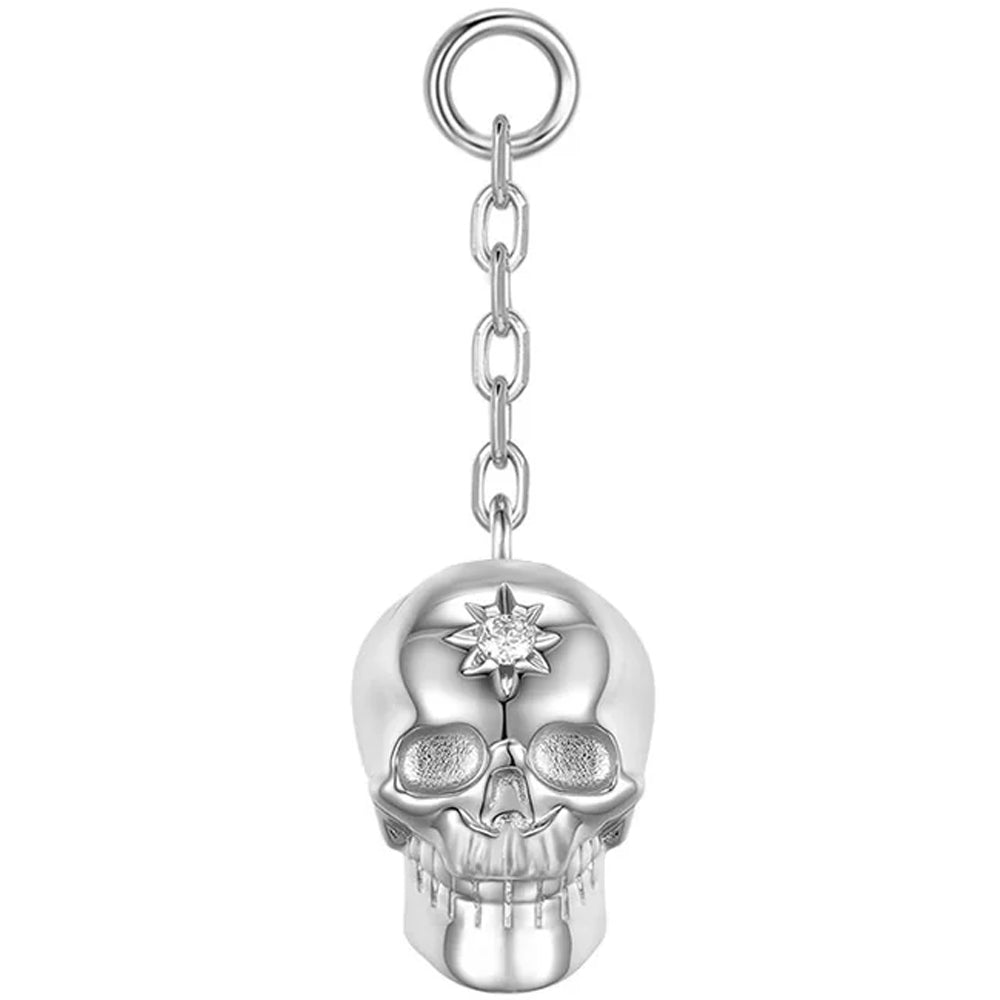 Give your jewelry collection an edgy vibe with this dangling gemmed skull!