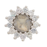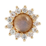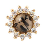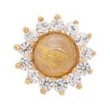 - 6mm threadless end with (1) 4mm Genuine Golden Rutilated Quartz in Prong's surrounded by (13) 1mm Round White Sapphires in Prong's
