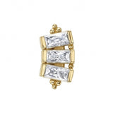 - Tiny: 6mm x 2.5mm cluster threaded end with (3) 1.5mm x 1mm Baguette-Cut White CZ's in Prong's