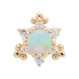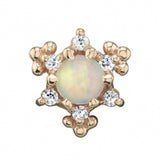 - 7mm threaded end with (1) 3mm Rose-Cut Grey Diamond in Prong's, (3) 1.25mm Round Genuine White Diamonds in Prong's, & (3) 1.5mm Round Genuine White Diamonds in Prong's with tiny bead accents