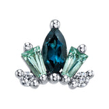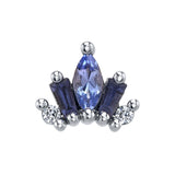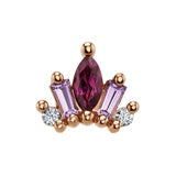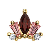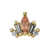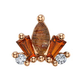 - 7mm threaded end with (1) 5mm x 2.5mm Marquise Cut Faceted Copper Rutilated Quartz surrounded by (2) 3mm x 2mm x 1mm Tapered Baguette Cut Madeira Citrine & (2) 1.5mm Round Genuine White Diamonds in Prong's