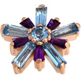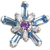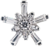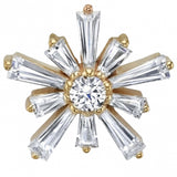 - "Supernova": 13mm threaded end with (5) 5mm x 2mm x 1mm White CZ Tapered Baguettes & (5) 3mm x 2mm x 1mm White CZ Tapered Baguettes surrounding (1) 3mm Round White CZ in Prong's